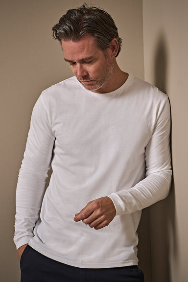 Rengaskehrätystä kampapuuvillasta valmistettu pitkähihainen T-paita soveltuu vapaa-ajan lisäksi työkäyttöön, sillä paidan voi pestä 60 asteessa. T-paidan kangas on tuplakutistettu sekä entsyymi- ja silikonipesty.